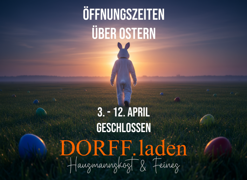 Vom 03. bis einschließlich 12. April 2026 bleibt der Dorffladen geschlossen. Ja, richtig gelesen: Wir machen Osterferien.