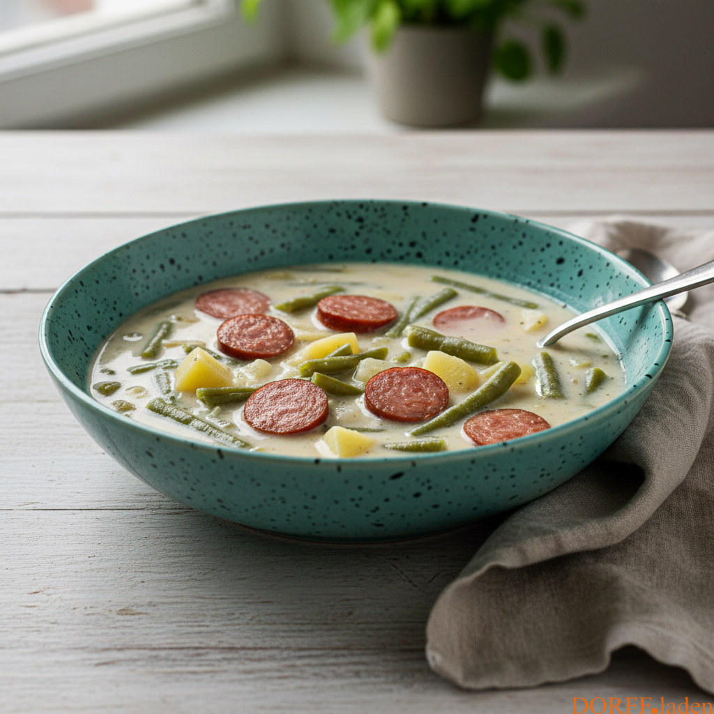 - Kölsche „Buttermilch & Bonne Zupp“ – Buttermilch-Bohnensuppe nach kölscher Art mit Kartoffeln & Bergischer Mettwurst (8,50 €)