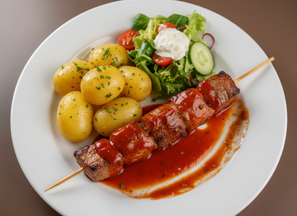 - Mittwoch: Riesen Schaschlikspieß mit Butterkartoffeln & Salat – 12,50 € Allergene: 1,3,6,7,9,10,12 (Wein)